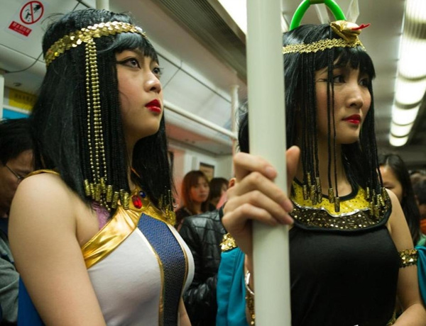 深圳地铁惊现浓妆“埃及艳后”(1)(2)