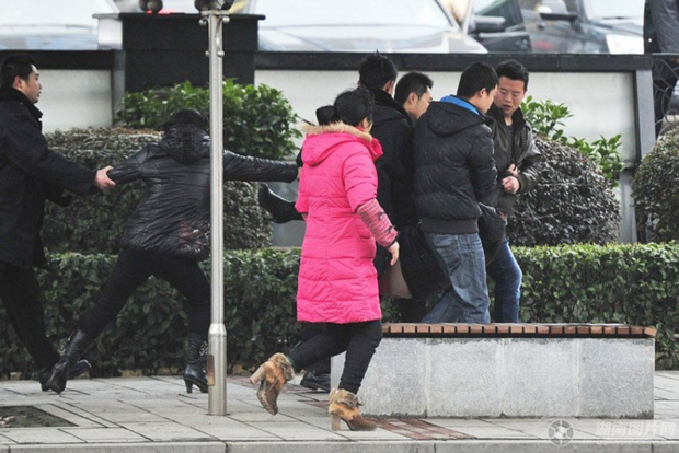 2月19日中午,长沙市八一路富丽华酒店门口,死者王某家属在酒店前讨要说法,随后被保安驱赶离开。
