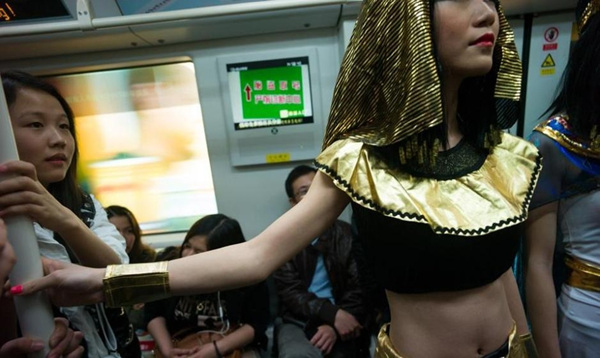 深圳地铁惊现浓妆“埃及艳后”(1)(2)